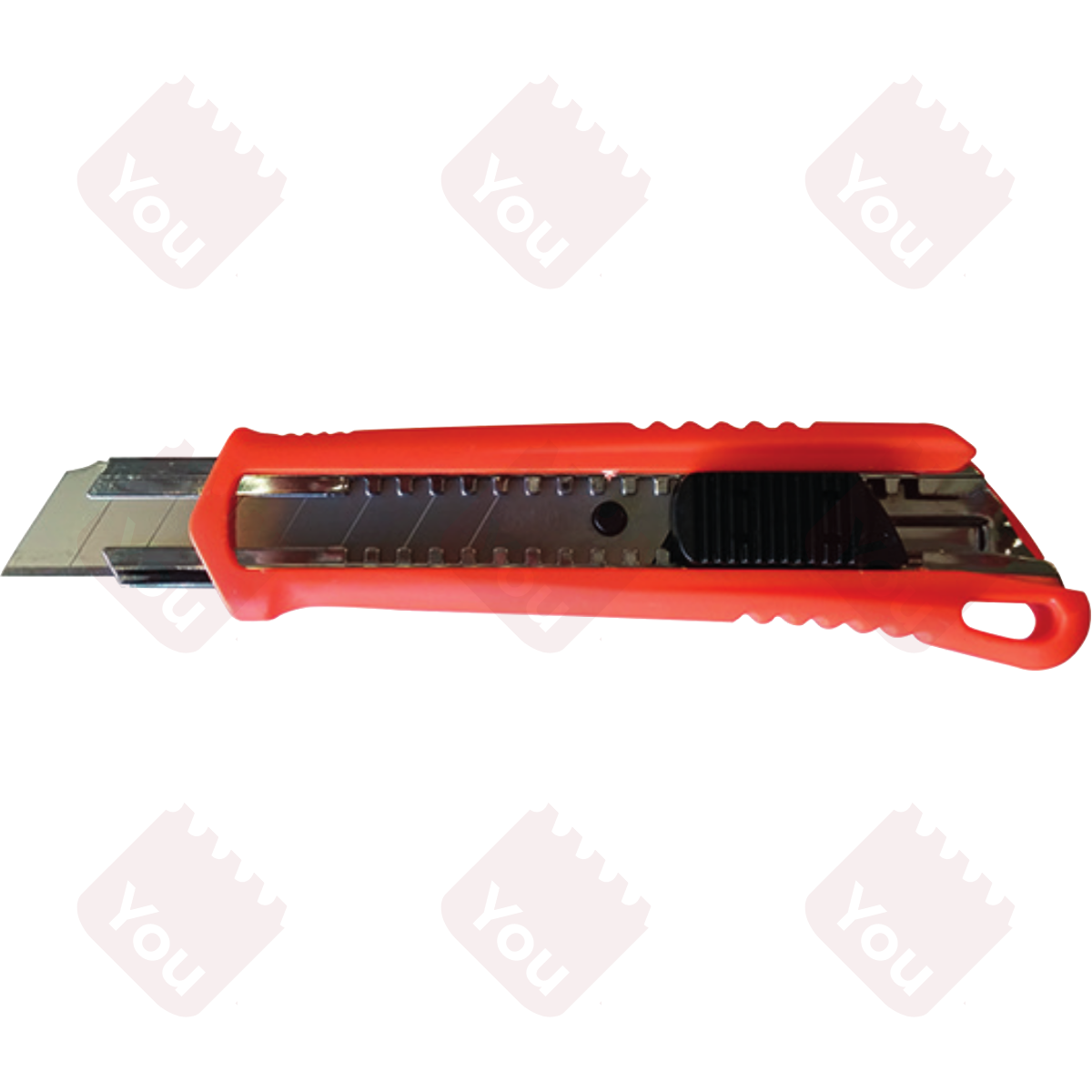 Corpo in plastica. Pulsante di blocco automatico. Lama a spezzare