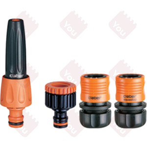 Contiene: presa a rubinetto 3/4" con riduzione 3/4"-1/2", raccordo automatico 1/2", raccordo automatico con AQUASTOP 1/2", lancia spruzzo