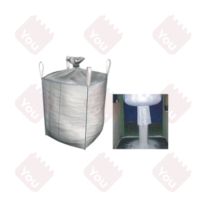 Fondo con valvola di scarico. Chiusura superiore a caramella. 4 bretelle di sollevamento. Portata Kg.1500. Fattore di sicurezza 5:1