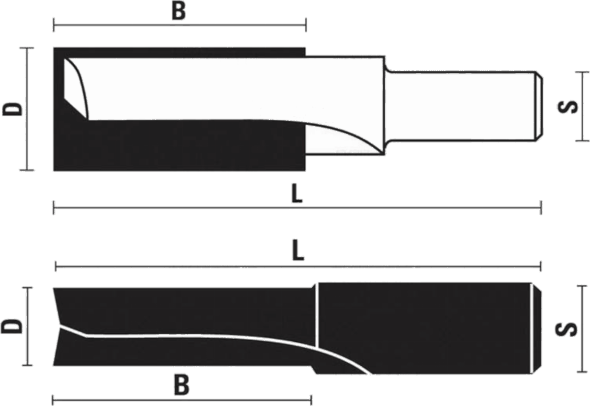 Fora e contorna (Z=2+1) con speciale placchetta HW affilata in testa per forare. Indicate anche per la lavorazione di materiali plastici, acrilici, polipropilene, acetati e policarbonati. Si usano anche su macchine CNC