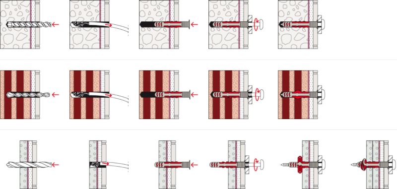 - Per la foratura utilizzare punte adatte a seconda della tipologia del materiale. Si raccomanda l’utilizzo di frese diamantate fischer FC esclusivamente per i fori sulle piastrelle.