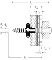 Diametro foro d0 6 [mm] Lunghezza fissaggio l 38 [mm] Attacco utensile TX20 Tolleranza diametro foro 6 - 6,4 [mm] Profondità sigillatura tv 5 - 14 [mm] Spessore della piastrella tF 5 - 10 [mm] Viti da legno e truciolari ds 4,5 x 60 [mm] Profondità foro min h1 65 - tfix [mm] Spessore fissabile max t fix 12 [mm]