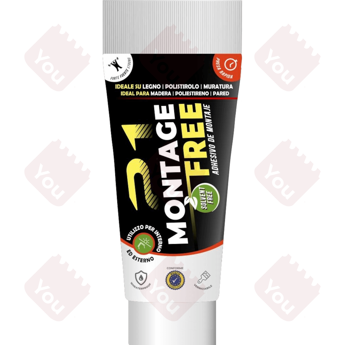 Adesivo universale per montaggio a base d'acqua e resine sintetiche.