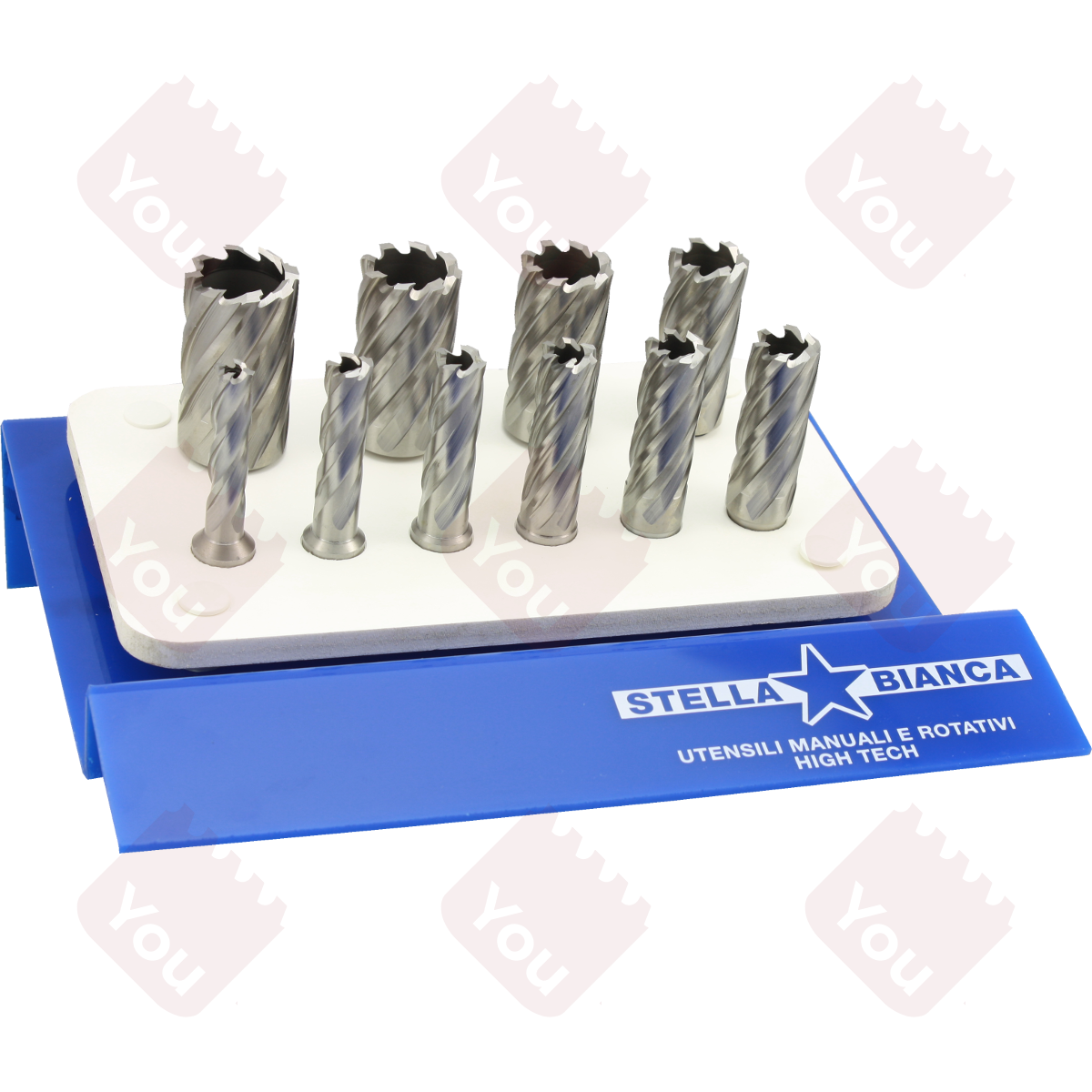 Frese HSS con attacco 19 mm per trapani a supporto magnetico h=50mm, diametri inclusi 12, 14, 16, 18, 20, 22, 25, 30, 32, 35 mm