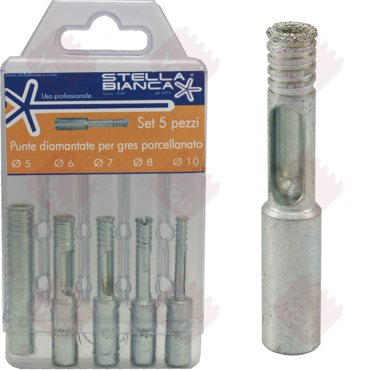 Ideali per forare gres porcellanato anche di classe 5 di durezza e vetro. Le originali Stella Bianca, un successo mondiale. Inclusi diametri mm 5, 6, 7, 8, 10