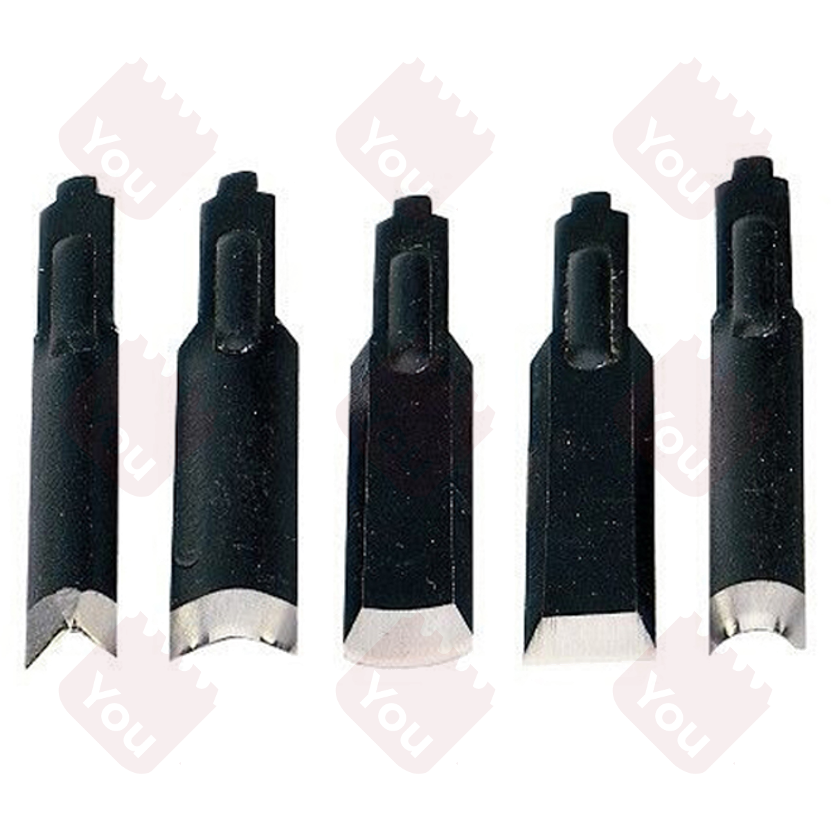 In bimetallo, forma a V, tondo grande, dritto a rasoio, piatto, tondo piccolo.