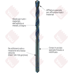 Per forare molteplici materiali: pietra, granito, legno, plastica. ferro. Ideale per artigiani. Qualità super professionale, utilizzabile sia in rotopercussione che in sola rotazione