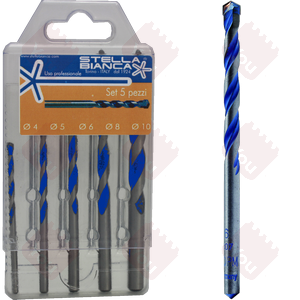 Per forare molteplici materiali: pietra, granito, legno, plastica. ferro. Ideale per artigiani. Qualità super professionale, utilizzabile sia in rotopercussione che in sola rotazione. Inclusi diametri 4, 5, 6, 8, 10 mm