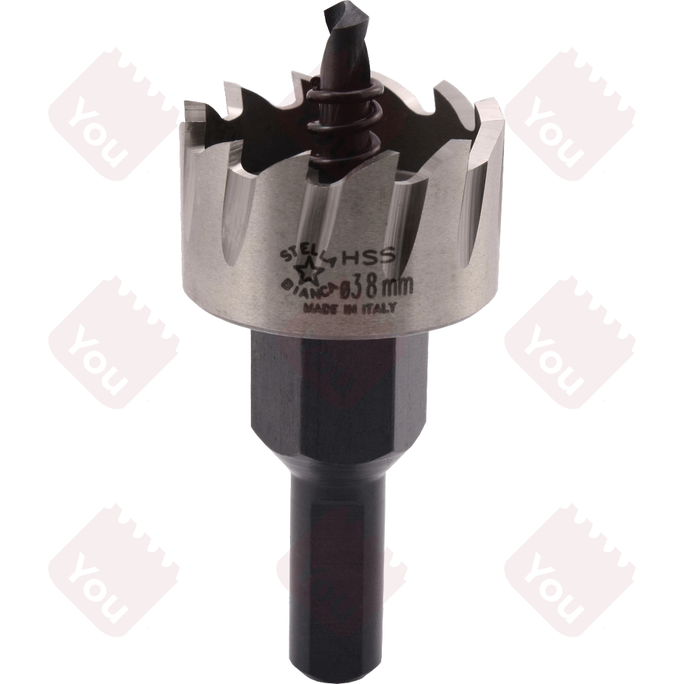 La fresa a tazza HSS con scarico laterale (articolo 36) è ottenuta a partire dalla fresa a tazza HSS standard (articolo 33) tramite un'operazione di fresatura del corpo in corrispondenza dei denti. Lo scarico così ottenuto agevola l'evacuazione del truciolo e permette una migliore refrigerazione del dente.