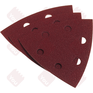Dimensioni mm 93x93. Per sgrossare, levigare e rifinire legno, per levigatrici a delta, con punta triangolare, attacco tramite velcro