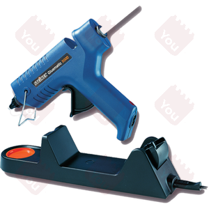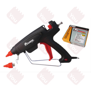 180W. Professionale. Colla diam. mm.11-11,5. Con interruttore. Temperatura di scioglimento 193C. Doppia resistenza. Tempo di riscaldamento 2 min. Regolatore di estrusione colla. Incluso ugello isolato anti goccia e supporto metallo