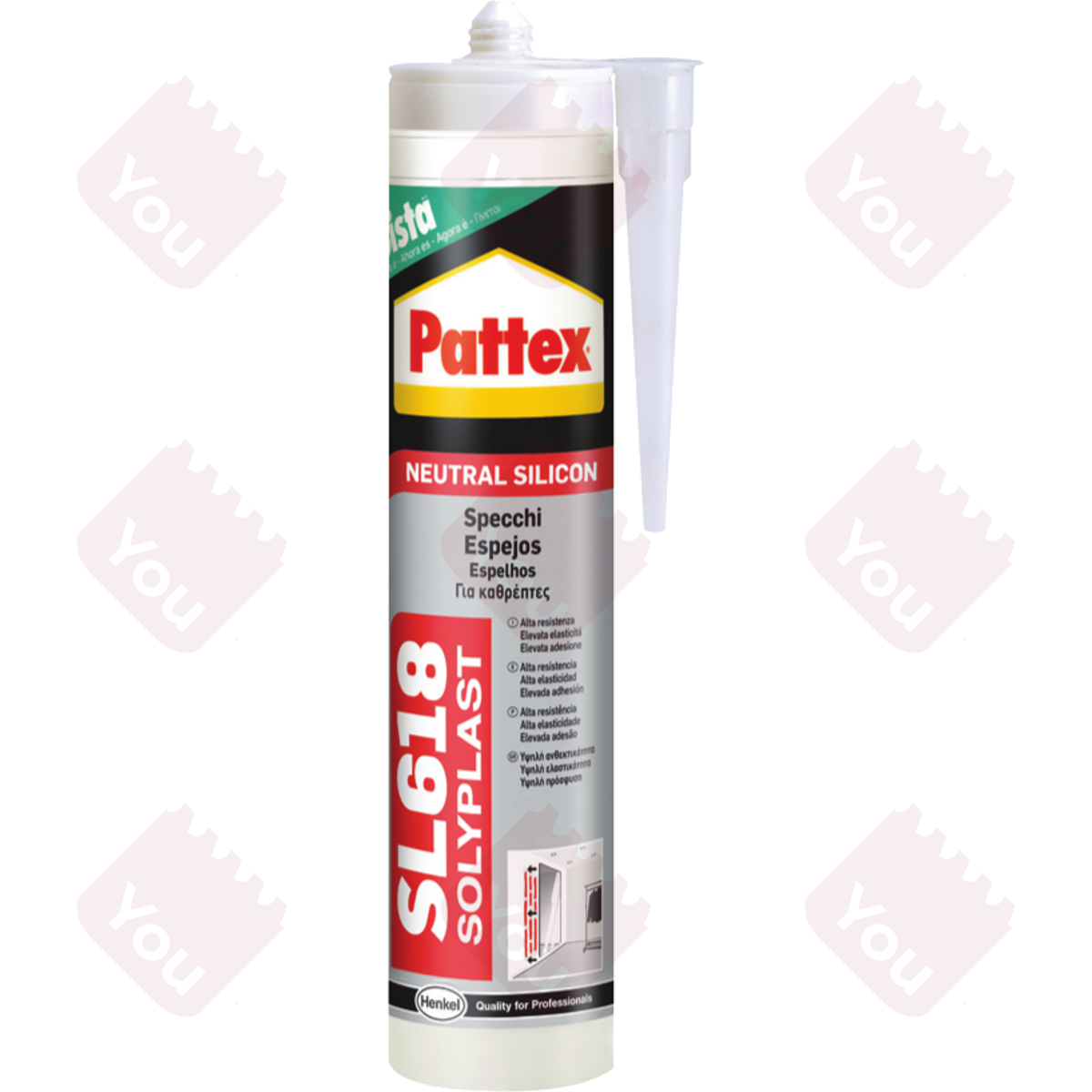 Cartucce da 300 ml, colore trasparente. Alta resistenza ed elevata elasticità ed adesione, ideale per l'incollaggio di specchi.