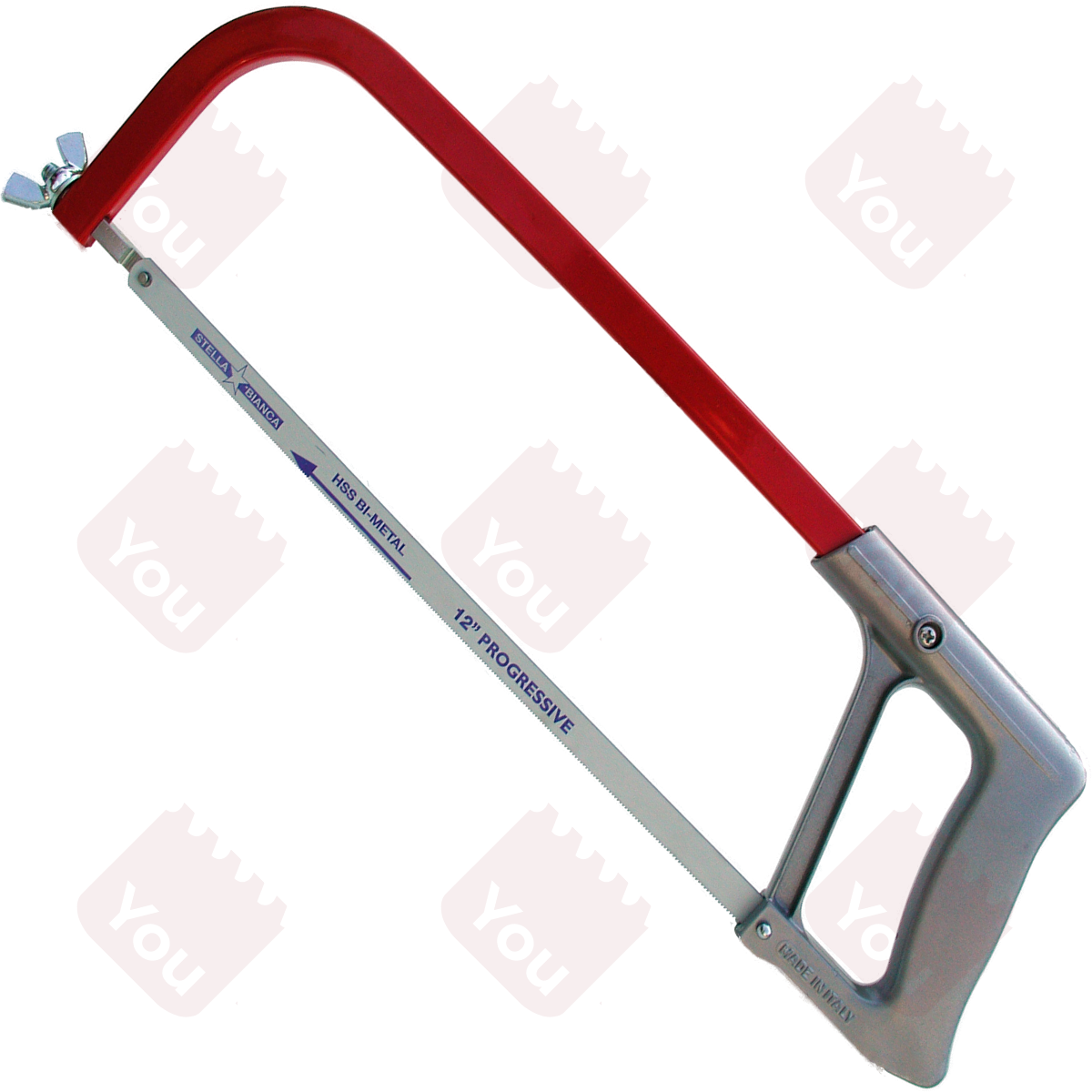 L'archetto con impugnatura a pistola (articolo 65) ha il telaio in lega di alluminio, è dotato di tendilama a galletto e lama HSS bimetal progressive.