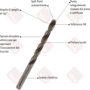• Spirale elicoidale ottimizzata per agevolare l'evacuazione del truciolo