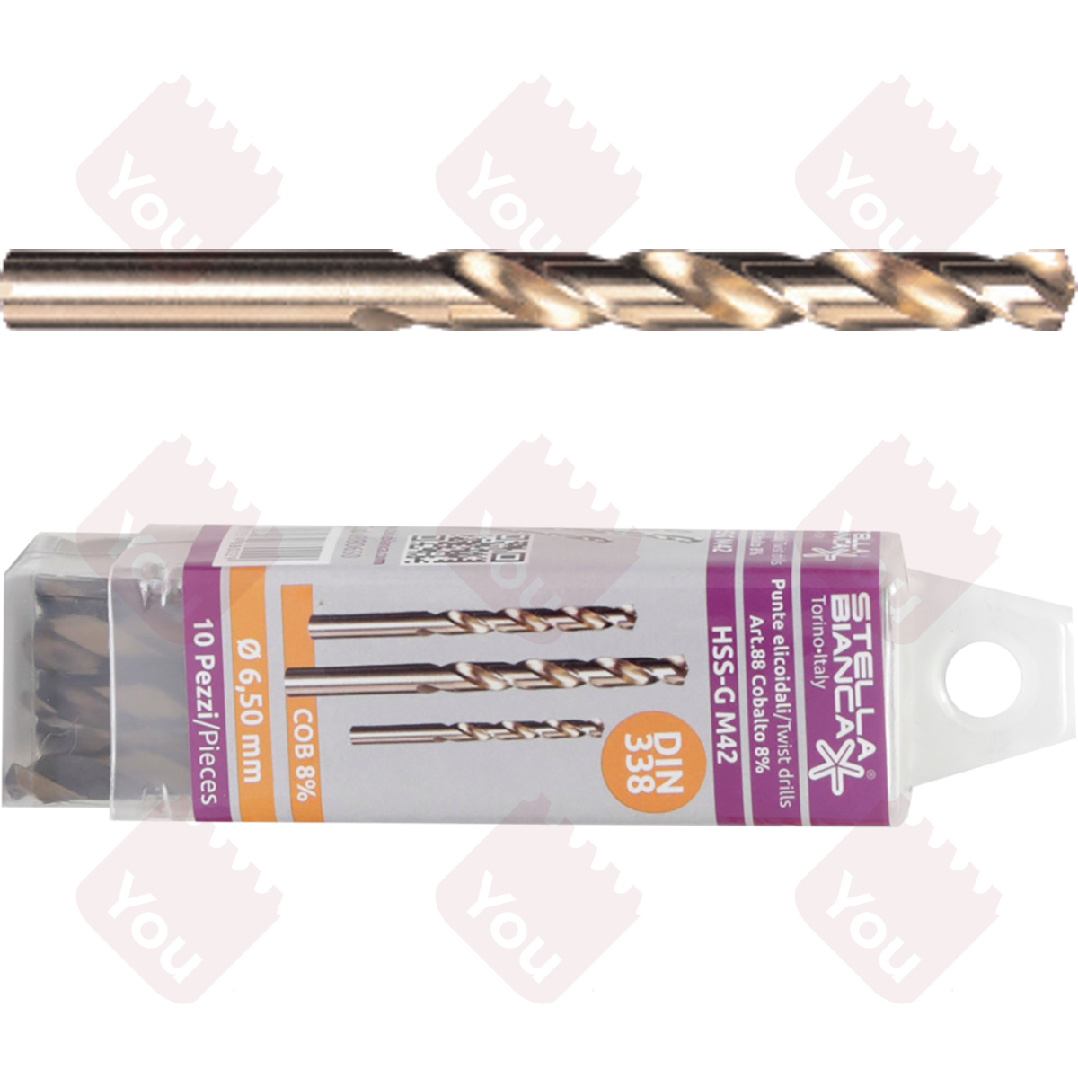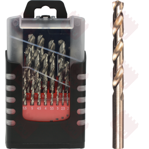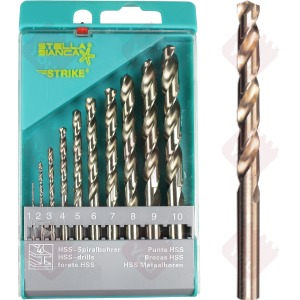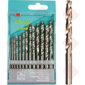 Le punte HSS-E DIN 338 Cobalto 8% (articolo 88) sono perfette per forare acciaio inox e metalli tenaci, fino ad una resistenza R<1400N/mm². L'impiego di acciaio al cobalto di questo tipo garantisce prestazioni ottimali anche nella foratura degli acciai più resistenti. Da sempre, il marchio Strike contraddistingue punte di elevata qualità, in una gamma sempre più completa. Tutte le punte sono fresate dal pieno e rettificate, e vengono sottoposte ad un severo controllo di qualità per garantire che siano sempre all'altezza delle aspettative dei nostri clienti.