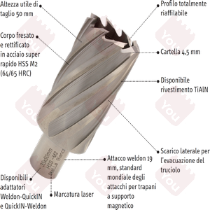 - Attacco Weldon 19 mm, standard mondiale degli attacchi per trapani a supporto magnetico