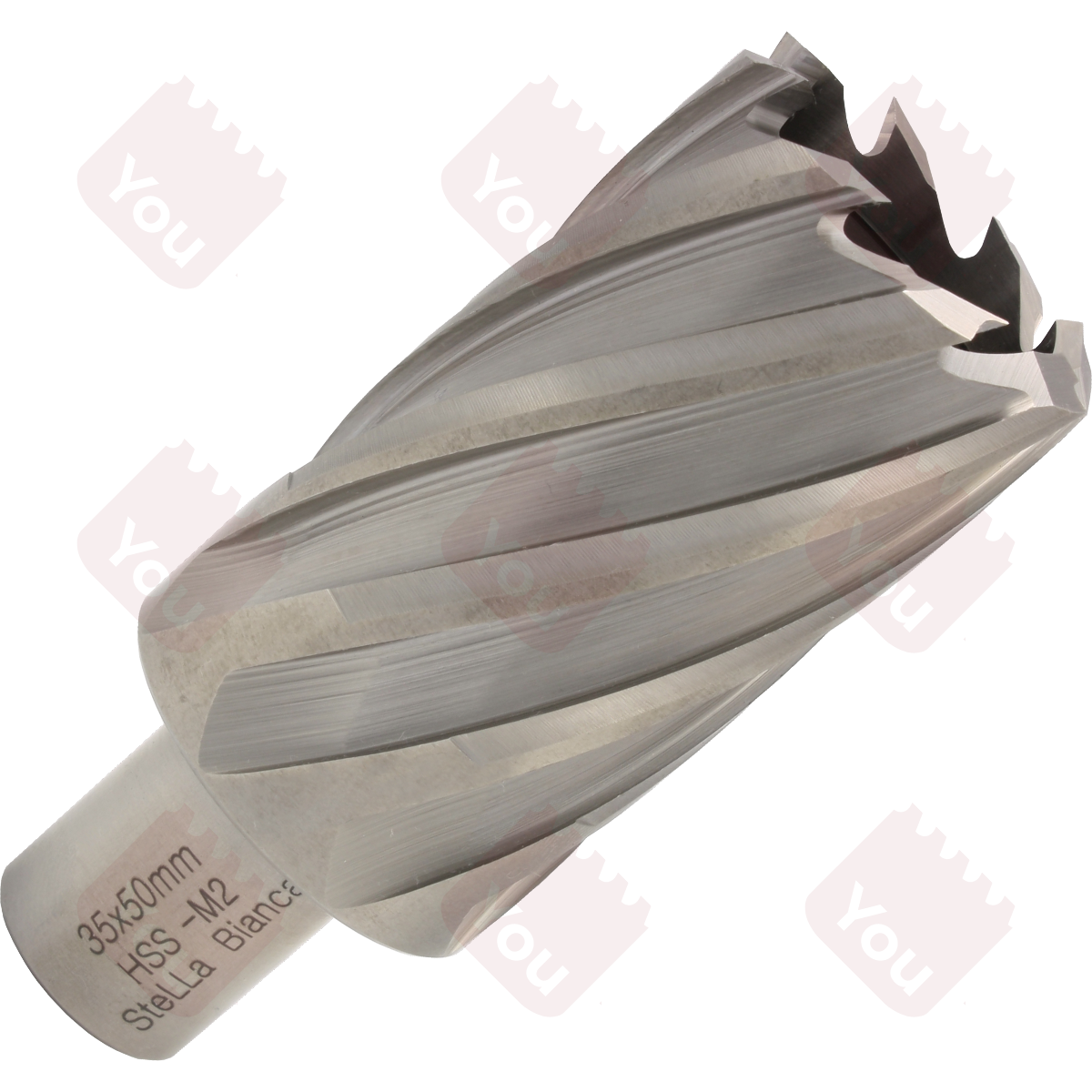 La fresa HSS con attacco Weldon 19 mm per trapani a supporto magnetico, h=50 mm (articolo 38L), è realizzata partendo da una barra di acciaio AISI M2, attraverso lavorazioni meccaniche di tornitura, rettifica e dentatura. Viene sottoposta a trattamento termico in atmosfera controllata; la durezza così ottenuta è di 64/65 HRC.