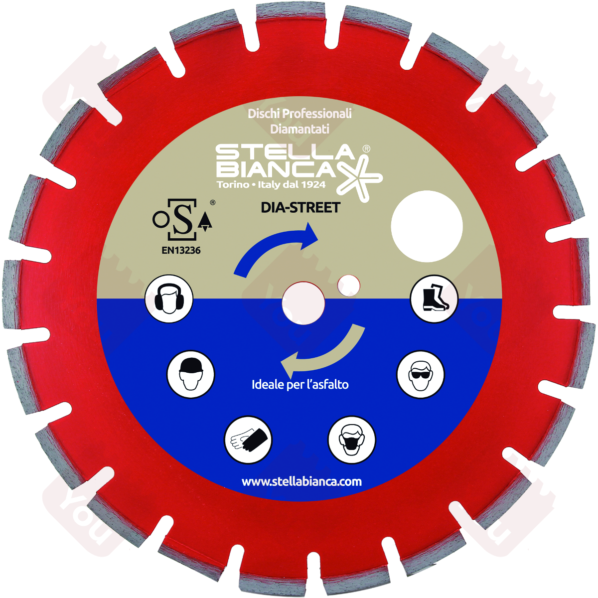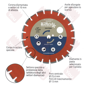 I dischi diamantati Hartex Dia (articolo 92AS) per asfalto e materiali abrasivi con corona a settori diamantati possono essere montati sia su macchine portatili che fisse. Il disco taglio per asfalto e cemento di Stella Bianca è disponibile in diverse combinazioni di diametro (da 350 mm a 400 mm) e ha foro centrale da 25,4 mm. Sono disponibili dischi diamantati Hartex Dia con corona continua per uso universale e per pietra (articolo 92TU e 92TP), o con corona a settori saldati laser per taglio universale; dischi diamantati per ceramica e marmo (articolo 92CE), per gres porcellanato (articolo 92GP), per scanalatori (articolo 92SC) e per cemento armato (articolo 92FE).