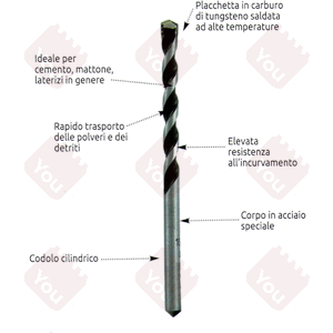Con placchetta in carburo di tungsteno per forare cemento, mattoni e laterizi in genere, qualità professionale