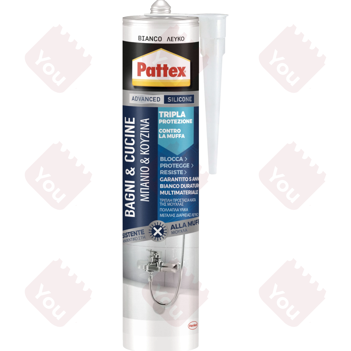 PATTEX Bagni e Cucine 3x Protection è un sigillante siliconico monocomponente a reticolazione neutra che contiene un fungicida per applicazioni su sanitari. Garantisce una tripla protezione: previene, blocca e inibisce la proliferazione delle spore di muffa sulle superfici.
